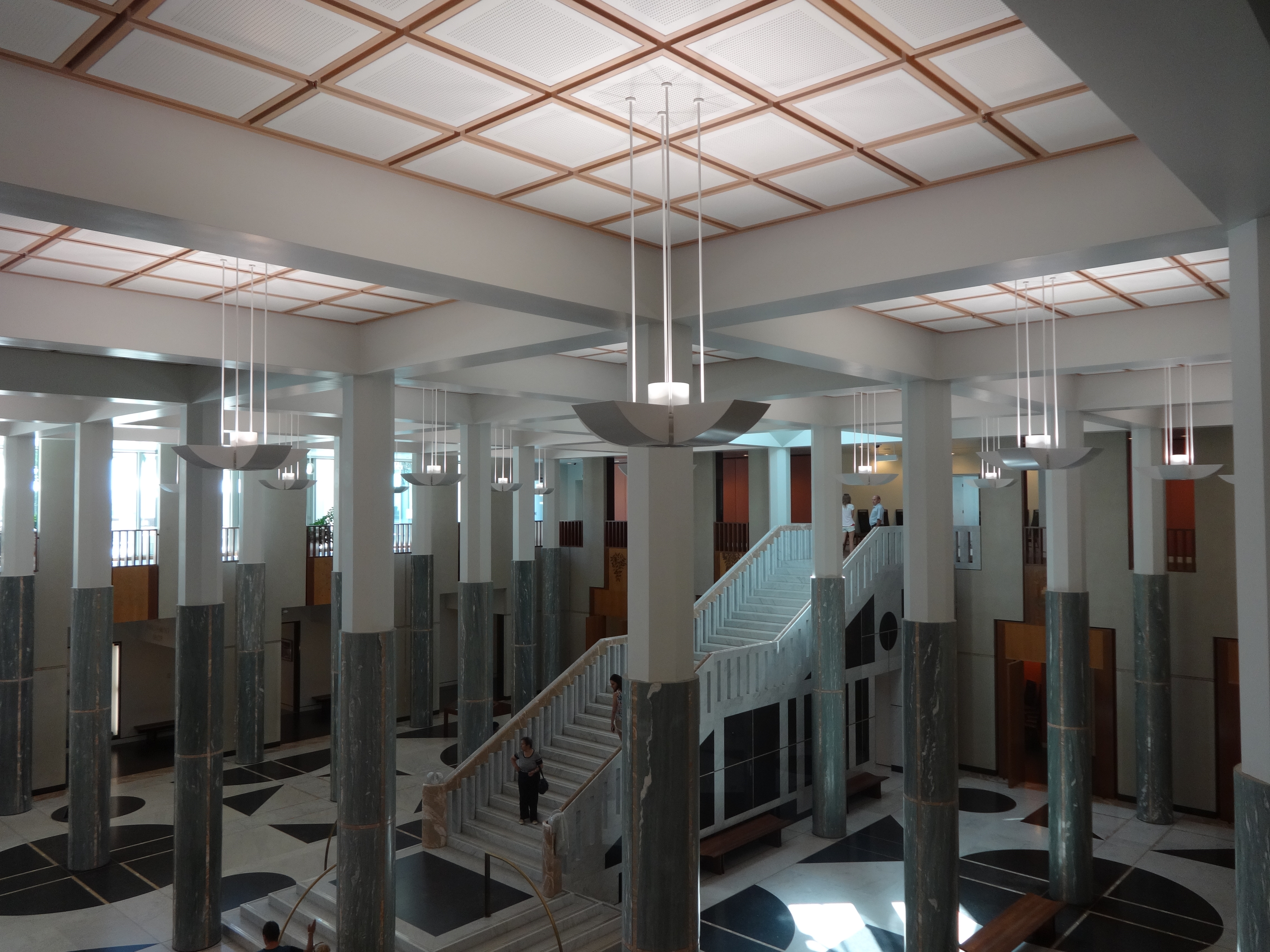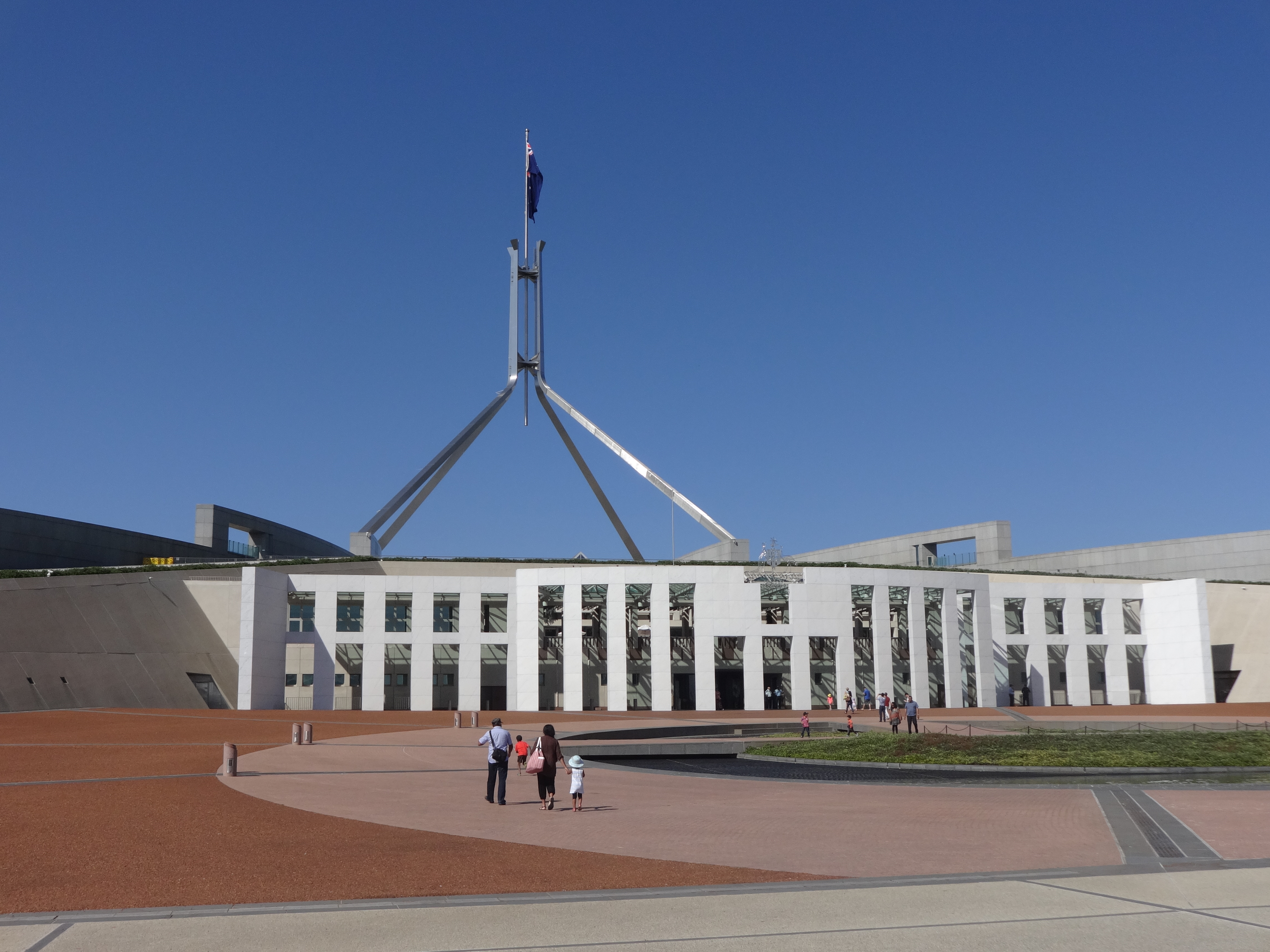 The next morning I enjoyed one of the most beautiful jogs I’ve ever had – around the lake in Canberra. With the sun rising off the sparkling water, birds chirping, and a lovely crispness in the air, I was in heaven. After a quick shower and breakfast we were off to do a tour of the Parliament building – highly recommended if you’re looking to learn a bit more about Australian history and politics. The building itself is a beautiful modern somewhat spacey-looking structure high on a hill above the city. Our guide was very interesting and informative and happy to answer extra questions from the audience.