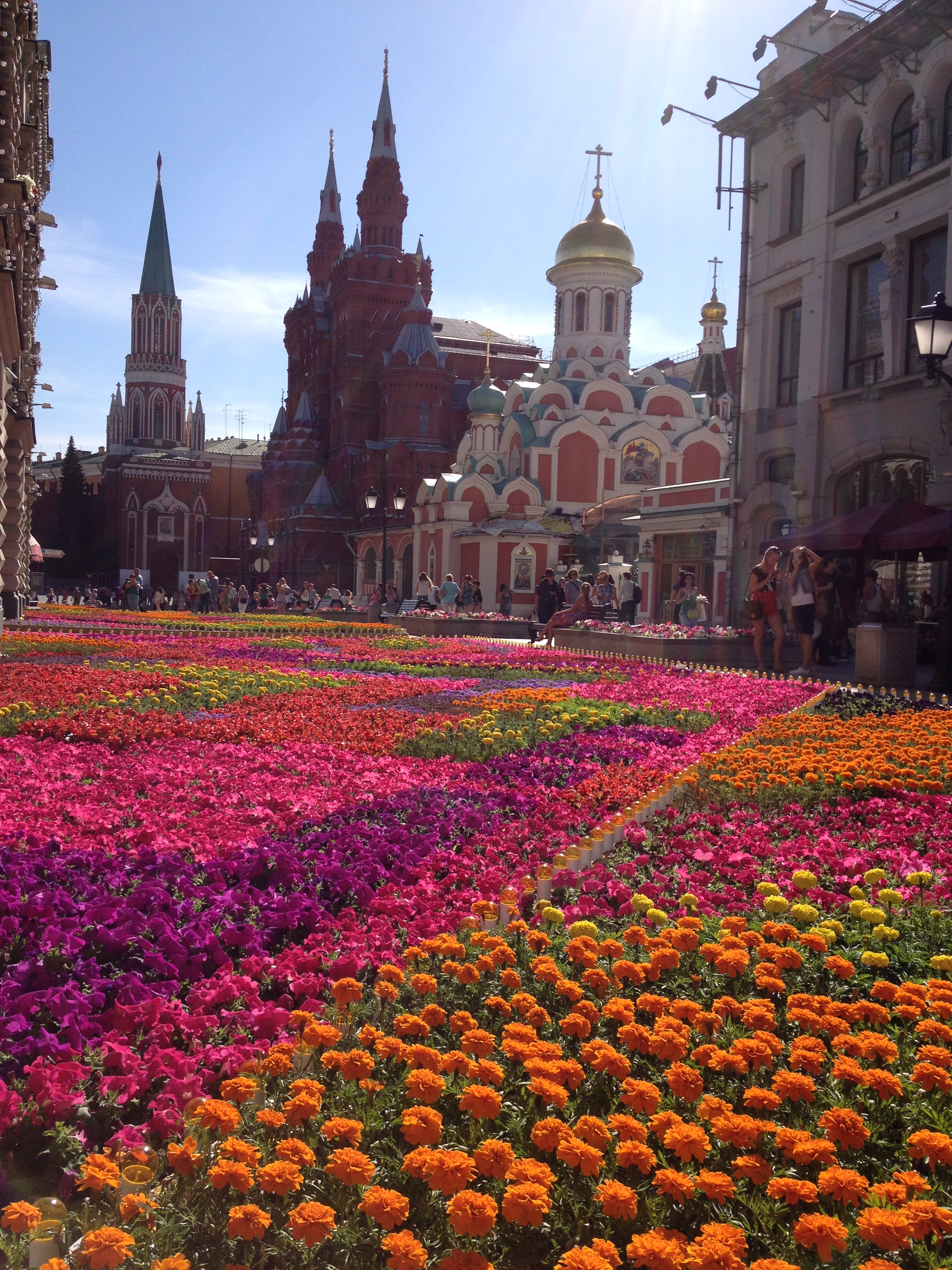I landed in June in the city to brilliant blue skies and a balmy 30 degrees. Coming in from the airport was like a journey back in time – a sea of rather morose modern era apartment buildings and strip malls gave way to spectacular sparkling architectural marvels, preserved to an amazing standard and winking with gold accents. The city center is beautiful. The hotel staff however were icy as hell and ridiculously unhelpful. Alas. I was due to meet a colleague in half an hour for a tour around the city, so I made a quick change and then we set off. First we wandered directly from my hotel to Red Square and St. Basil’s Cathedral – really an unbelievable place to be.