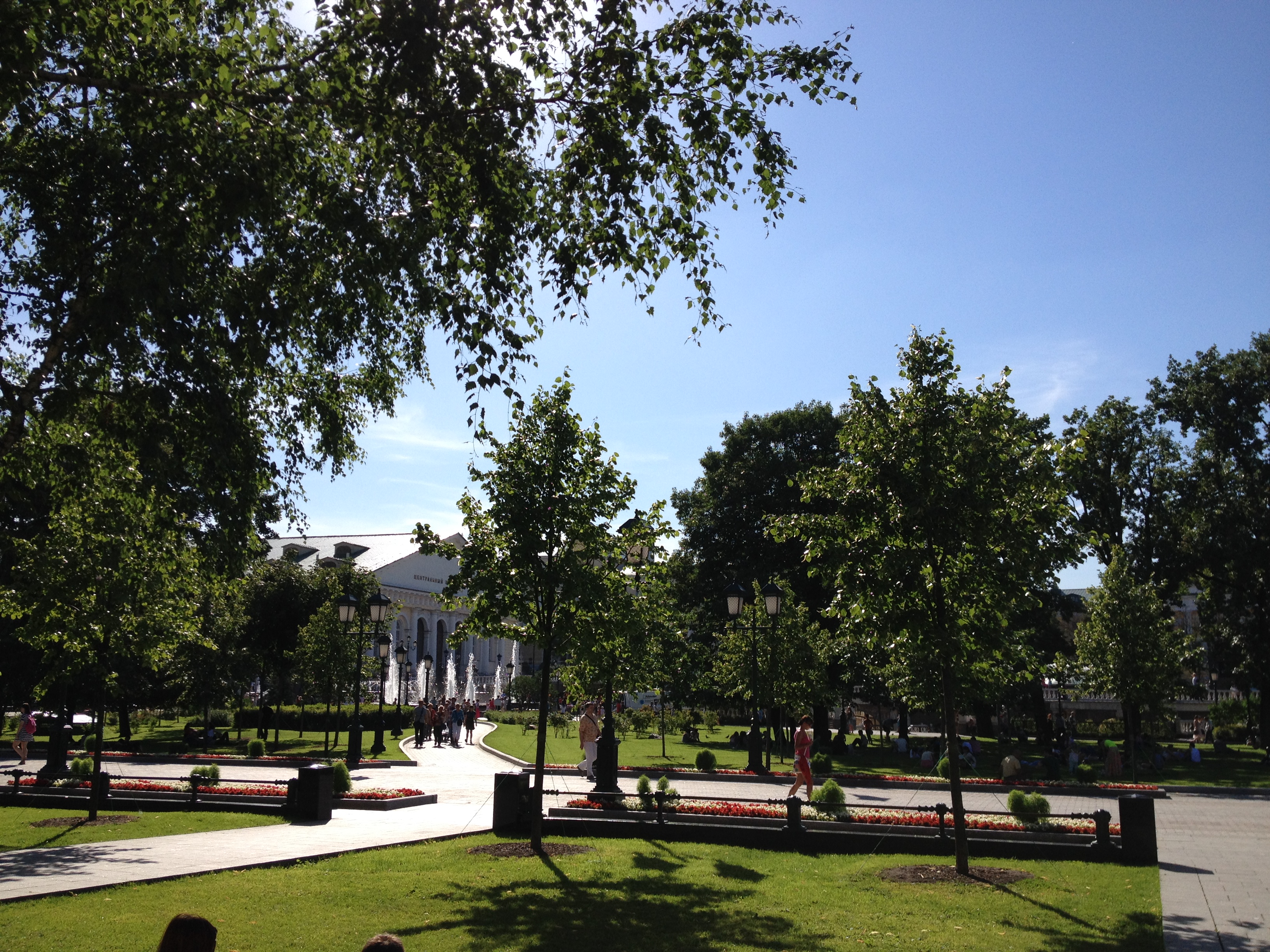 We snapped some pics and crossed through the square, Alexander gardens, and over the bridge, eventually making it to Gorki park. As it was such a gorgeous sunny day the park was full of fellow walkers, joggers, cyclists, and picnickers. We crossed over another bridge, forging a roundabout and leisurely path to finally end at Arbat street – the quintessential shopping/restaurant street of Moscow.